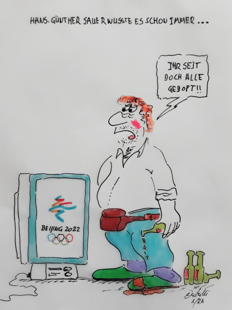 Die Winter-Olympiade – BEIJING 2022 – ist seit Sonntag (20. 02.2022) Vergangenheit. Heute gibt es einen letzten „cartulli’s Olympia-Cartoon“. Wir lassen, zu Abschluß, Hans-Günther Sauer in seiner unnachamlichen Art und Weise, zu Worte kommen.
