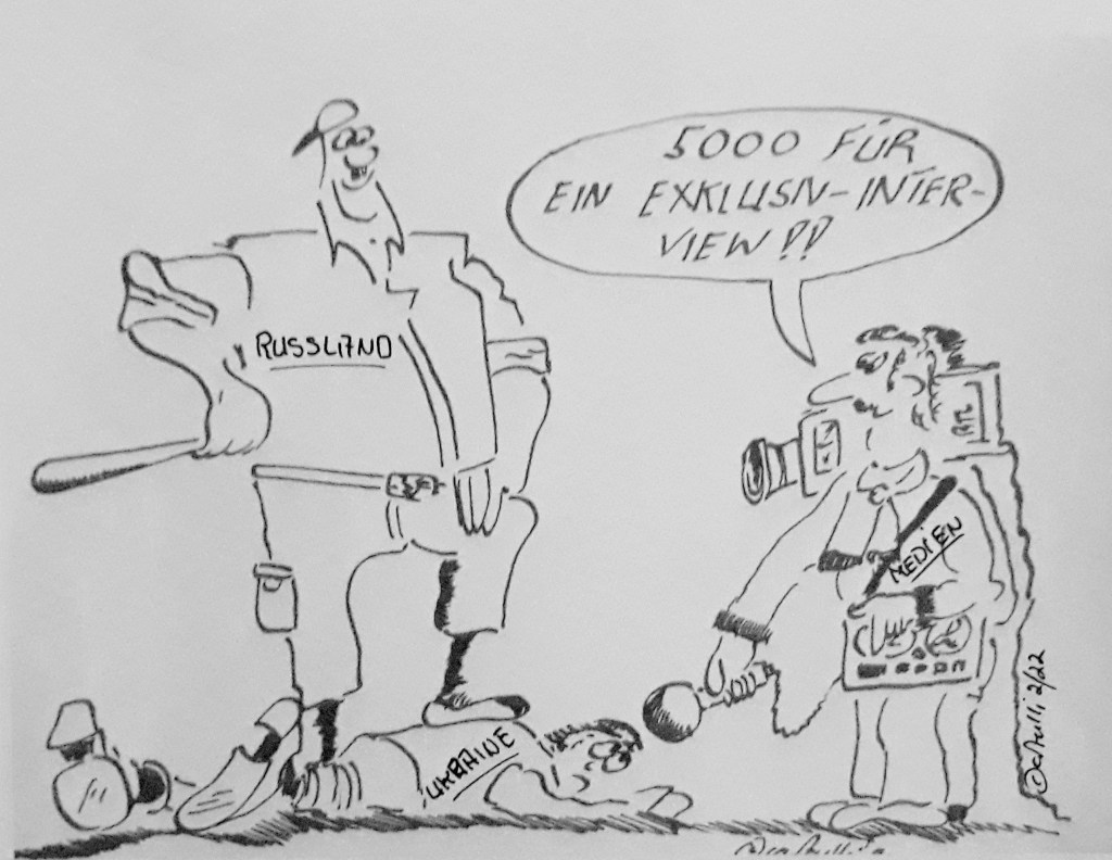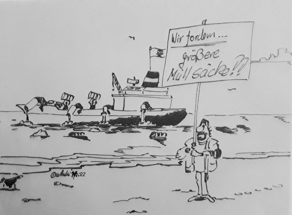 Rosenmontagsfest des Kölner Karnevals wegen Lage in Ukraine abgesagt. In anderen Städten ist es ähnlich. Also wieder nix mit Gaudiwurm am Rosenmontag. Hier in Cuxhaven haben wir damit keine Probleme.Krieg in Europa: Putin überfällt die Ukraine und die Medien sind hautnah – rund um die Uhr – dabei.Diese Frage sollte doch erlaubt sein!Der Plan der Hansestadt Hamburg, vor der Vogelinsel Scharhörn Schlick zu verklappen, hat nicht nur bei der Stadt Cuxhaven für einen Sturm der Entrüstung gesorgt. Umweltverbände, aber auch das Land Niedersachsen sowie der Landkreis Cuxhaven und die Samtgemeinde Land Hadeln lehnen das Vorhaben strikt ab. (Alle Zeichnungen: cartulli 2/2022 – CCC Cuxhaven-Cartoon-Center)