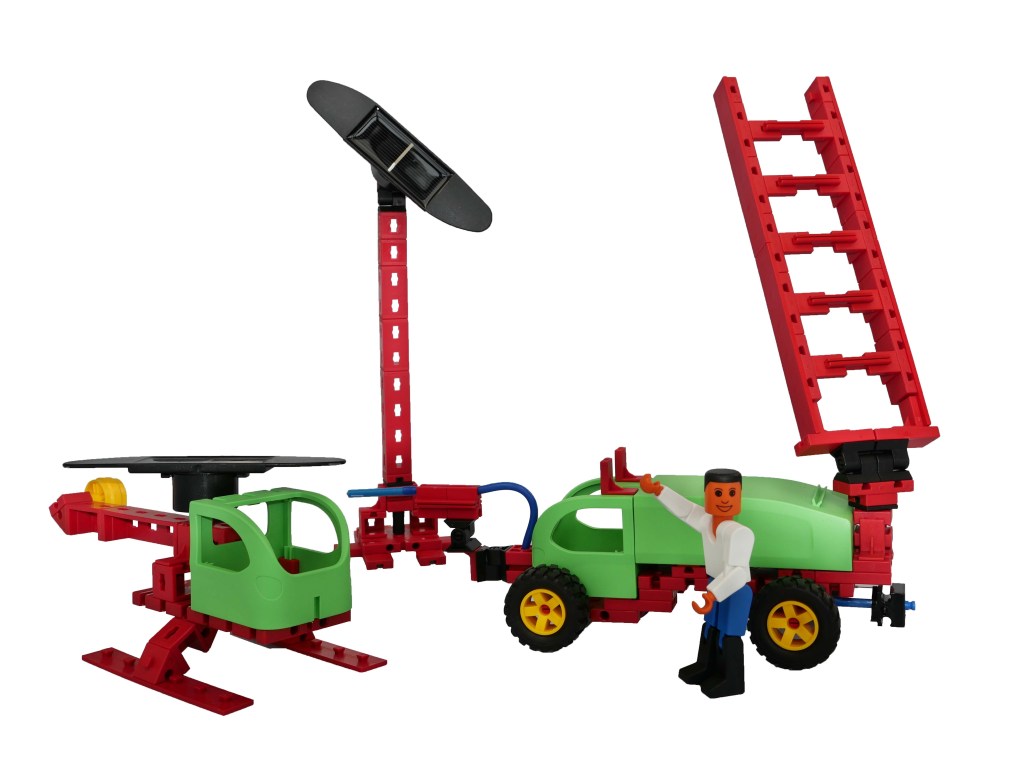 Dank des ebenfalls im Baukasten enthaltenen Solarrotor werden die jungen Konstrukteure auch mit der Nutzung regenerativer Energien und ihrer Bedeutung für eine nachhaltige Mobilität vertraut gemacht. So können die Kinder mit Hilfe des Baukastens zum Beispiel ein Solarboot oder einen Solarhelikopter bauen. Auch das Modell Windrad dreht sich mit Hilfe von Sonnenenergie. Somit leistet der fischertechnik Baukasten Junior Engineer einen Beitrag dazu, dass Kinder mit modernen Technologien vertraut gemacht werden.