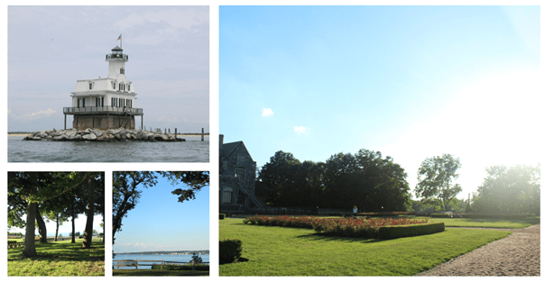Die Wanderwege drei bis sechs führen Besucher rund um das Gelände der Villen und beeindrucken durch einen einzigartigen Ausblick auf den gezeitengeprägten Meeresarm Long Island Sound. Für Familienspaziergänge mit Kindern ist der Dino-Pfad, auf dem Nachbildungen fossiler Fußabdrücke von Dinosauriern zu entdecken sind, ein aufregendes Abenteuer.