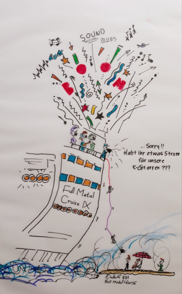 Die Mein Schiff 3 ist ein Kreuzfahrtschiff mit 14 Decks und Kapazität für 2.506 Passagiere, 293,3 Meter lang und 35,8 Meter breit. Genug Platz für ein schwimmendes Metal-Festival! Die Bands spielen auf mehreren Bühnen an Bord, etwa unter freiem Himmel auf dem Pooldeck und unter Deck im Theater.