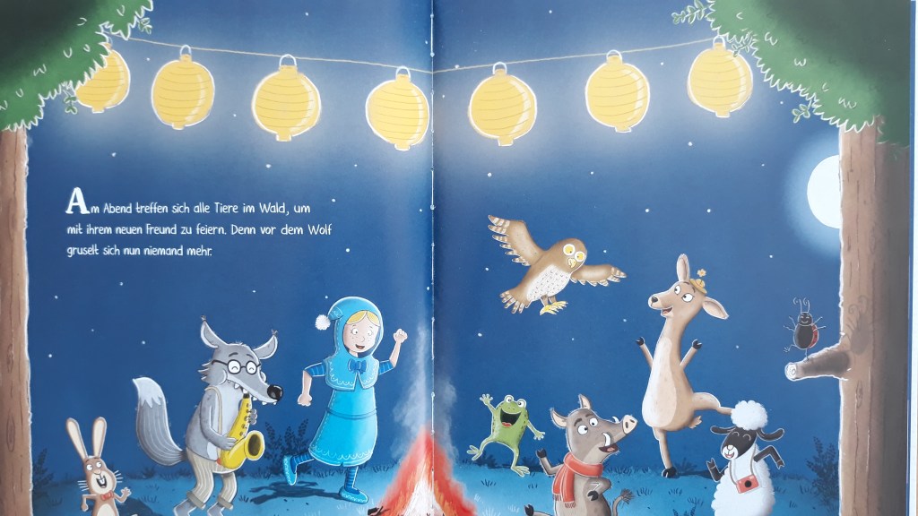 Worum geht es: Der gute Wolf sitzt traurig am Wegesrand, weil niemand mit ihm spielen will. Alle haben Angst, obwohl sie ihn eigentlich gar nicht richtig kennen. Als Blaukäppchen das erfährt, beschließt sie, ihm zu helfen. „Aber der Wolf ist so gruselig“, behauptet der Frosch. „Er hat so große Ohren.“ So ein Quatsch, findet Blaukäppchen, die hat er doch nur, damit er besser Musik hören kann. Nach und nach gelingt es dem fröhlichen Blaukäppchen, auch bei allen anderen Waldbewohnern die Vorurteile aus dem Weg zu räumen.