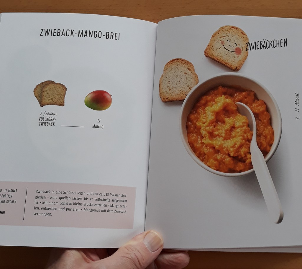 So, ist auch selber Kochen gar nicht schwer. Auf 10 Seiten erklärt Dunja Rieber die Grundlagen und gibt Tipps zur Breikosteinführung, wobei sie sich da auf die aktuellen Empfehlungen der FKE (Fachgesellschaft für Kinderernährung) bezieht. Außerdem wird erklärt, wann und womit man mit Breikost starten kann. Abgerundet wird das alles durch einen sehr informativen Anfangsteil, der alle Themen von klassischer Breikost über Baby Led Weaning bis hin zu vegetarischer Ernährung umfasst.