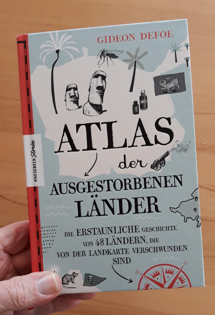 Warum ich das Buch empfehle: Gideon Defoe untersucht den Tod von 48 Staaten und die Vorgeschichte dieser Vorfälle. Humor ist da sicher nicht immer angebracht, aber so etwas stört Engländer (hallo Monty Python …) bekanntlich nicht. Beispiel: die Republik Krim gehört zu den nicht mehr existierenden Staaten. Hier scheint der Humor des Autors etwas unangebracht, aber was soll’s. Und so widmete er sich, in seiner ganz eigenen Art, dem Dahinscheiden von 48 Ländern, die plötzlich von der Landkarte verschwunden waren. Bis auf die Geschichte Bayerns (ich komme aus Bayern), war der Inhalt der Ländergeschichten mir bisher nicht vertraut – also, auch bei diesem gewöhnungsbedürftigen Schreibstil, alles gut gemacht.