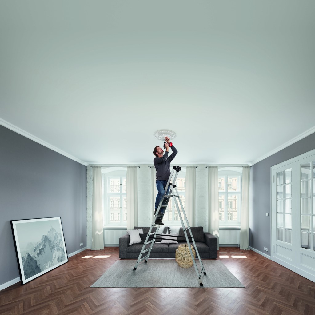 Wird eine bestehende Leuchte ausgetauscht, kann der bestehende Befestigungspunkt übernommen werden oder es wird ein neues Dübelloch erstellt. Die alten Löcher können mit einem Reparaturspachtel, wie dem fischer Fill & Fix, verschlossen werden. Die überspachtelte Fläche lässt sich anschließend überstreichen. Werden erstmals Leuchten in Räumen angebracht, werden diese je nach Lichtbedarf passend zur Einrichtung montiert.