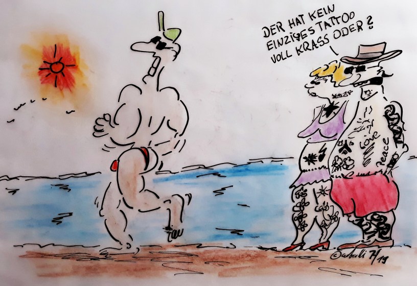 Man trifft sie an fast jedem Strand der Welt: Strandgänger, die auf irgendeine Art und Weise nerven – mal mehr, mal weniger. Hier meine ganz persönlichen Cuxhavener Strandtypen. In der Folge 17, heute: Die Tätowierten!