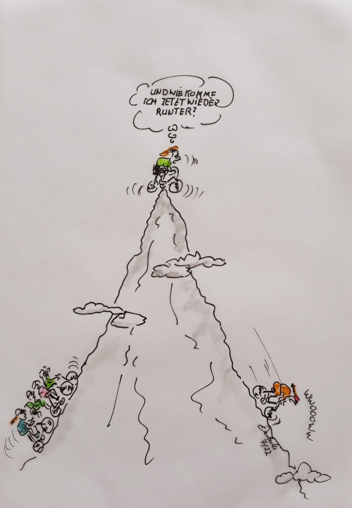 cartulli’s Tour de France Femmes-Cartoon: Die erste Auflage der Tour de France Femmes 2022 läuft vom 24.- 31. Juli über acht Etappen. Dazu gibt es hier „cartulli’s Tour de France Femmes-Cartoon“. Schaut regelmäßig rein und lasst euch überraschen. Heute, die 7. Etappe – Sélestat – Le Markstein (127,1 km). Eine sehr schwere Etappe. Das Dach der Tour erklimmen die Fahrerinnen auf ihrem Weg von Sélestat nach Le Markstein.