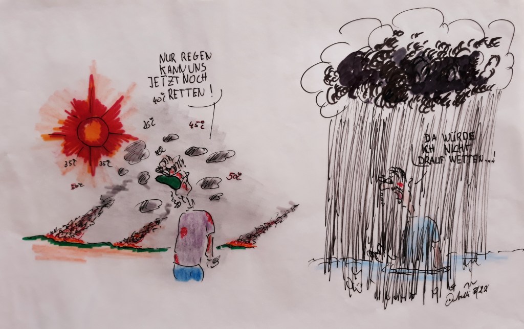 Der am 19. Juli 1947 geborene May steht bereits seit über 50 Jahren mit der britischen Rockband Queen auf der Bühne. Der virtuose Gitarrist mit der Lockenmähne rockt auch mit nun 75 Jahren noch die großen Stadien. An der Seite von Roger Taylor (72) und Freddie Mercury (1946-1991) ist er mit Hits wie „We Will Rock You“, „I Want It All“ und „The Show Must Go On“ weltberühmt geworden. Doch der Musiker hat sich auch abseits der Band einen Namen gemacht: als Astrophysiker, Autor und Tierschützer. Man könnte ihn als einen Tausendsassa bezeichnen.Überall in Europa wüten Waldbrände. Durch Hitze und Trockenheit verbreiten sich die Feuer rasend schnell. Auslöser sind fast immer Menschen. Für viele Urlaubsregionen sind die Aussichten düster. Hitze, Trockenheit, Winde: All das befördert die Flächenbrände. Die Verantwortung am Ausbruch der Feuer trägt indes fast immer der Mensch: mal durch ein Lagerfeuer oder eine nachlässig weggeworfene Zigarette – mal durch gezielte Brandstiftung.Vom 1. Juli bis 24. Juli lief die Tour de France 2022. Start war in der dänischen Hauptstadt Kopenhagen – ein Heimspiel für den Zweiten der vergangenen Tour, Jonas Vingegaard. Der 25-Jährige entthronte nach drei kräftezehrenden Wochen Tour-Doppelsieger Tadej Pogacar. Die wichtigsten Trikots: Gelb – Jonas Vingegaard, Grün – Wout Van Aert, Weiß – Tadej Pogacar, Berg/Punkte – Jonas Vingegaard. (Alle Zeichnungen: cartulli 07/2022 – CCC Cuxhaven-Cartoon-Center – Die Storyfactory)