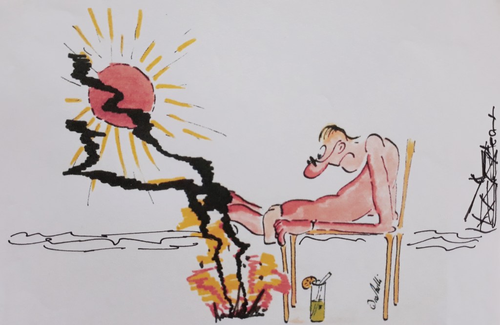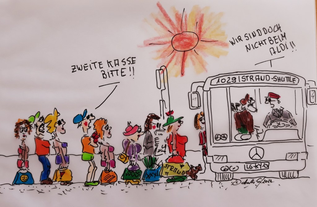 Die Hitze und Trockenheit der vergangenen Wochen machen sich in Flüssen und Seen deutlich bemerkbar. Das zeigt auch der Wasserstand der Elbe, der nicht mehr weit vom historischen Tiefstand entfernt ist. Das gleiche sieht man am Rhein. Sandbänke, Inseln, die zu Fuß erreichbar sind, breite Uferstreifen – deutlich ist sichtbar, dass der Rhein zu wenig Wasser führt. Zwar sind die Pegelstände noch nicht so niedrig wie 2018 beim Rekord-Niedrigwasser, aber die Stände bewegen sich deutlich in diese Richtung.Cuxhaven hebt die Preise beim Parken am Strand an. Wer in Strandnähe in parken möchte, muss ab sofort mehr zahlen als bislang. Die Gebühren wurden angehoben. Ein Tagesticket kostet jetzt 8 Euro. Damit wird Parken jetzt doppelt so teuer wie bisher. Und so kann man das SPAREN: Keine lästige Parkplatzsuche, einfach einsteigen und mit dem kostenlosen Strand- An allen Wochenenden der Monate Juli und August – jeweils samstags und sonntags – stellt Cuxhaven in diesem Jahr probeweise einen kostenlosen Strand-Shuttle vom Kreishaus in die bei Cuxhavenern, Urlaubern und Tagesgästen beliebten Stadtteile Döse und Duhnen zur Verfügung. Reisende können somit auf eine zeitintensive Parkplatzsuche verzichten und mit dem „Park and Ride“-Shuttle entspannt in Richtung Strand und Erholung starten.Deutschland leidet unter immer heftigeren Waldbränden – ein unlösbares Problem in Zeiten des Klimawandels? Es brennt in Europa, und dies längst nicht nur in Südeuropa. Die Trockenheit begünstigt Waldbrände. In Teilen Deutschlands kämpft die Feuerwehr gegen verheerende Flammen. Müssen wir in Zeiten des Klimawandels mit Feuer leben lernen? Denn selbst am Strand, im Urlaub, wird es immer heißer. (Alle Zeichnungen: cartulli – CCC Cuxhaven-Cartoon-Center – Die Storyfactory)