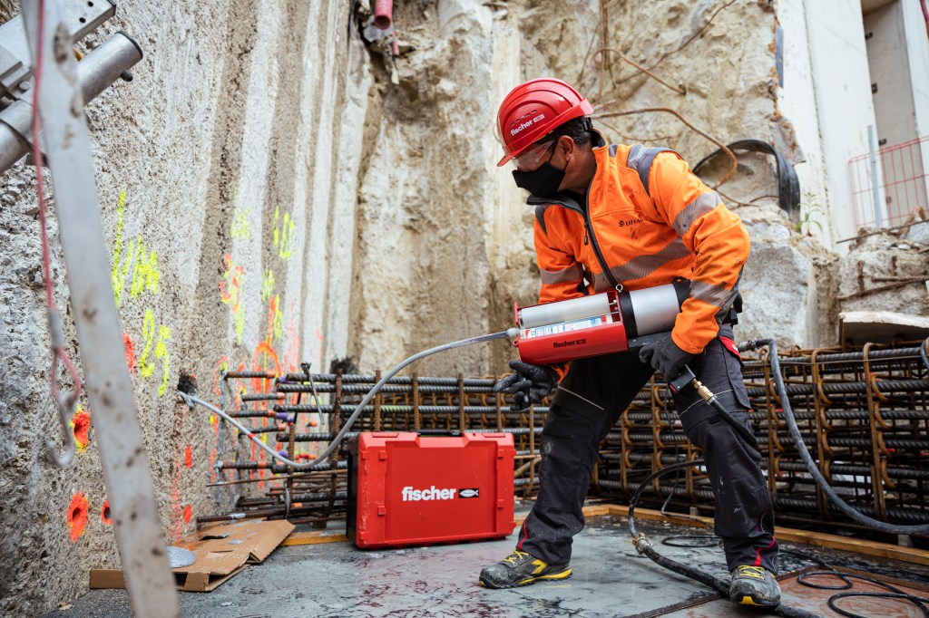 Der fischer Injektionsmörtel FIS EM Plus wird unter anderem für die Verbindung der Bodenplatten zu den Stützwänden eingesetzt. Hierbei sorgt das chemische Befestigungssystem auf den Baustellen für ein sicheres und schnelles Vorankommen. Der Mörtel ermöglicht, Bohrlöcher mit Wasser zu reinigen, statt diese aufwendig auszublasen und dadurch Staub und Rauch zu verursachen. Ein weiterer Pluspunkt ist, dass der FIS EM Plus sehr einfach gelagert werden kann. Ein extra beheizter Raum oder Behälter ist hierfür nicht nötig. Der Epoxidharzmörtel darf lediglich nicht gefrieren.
