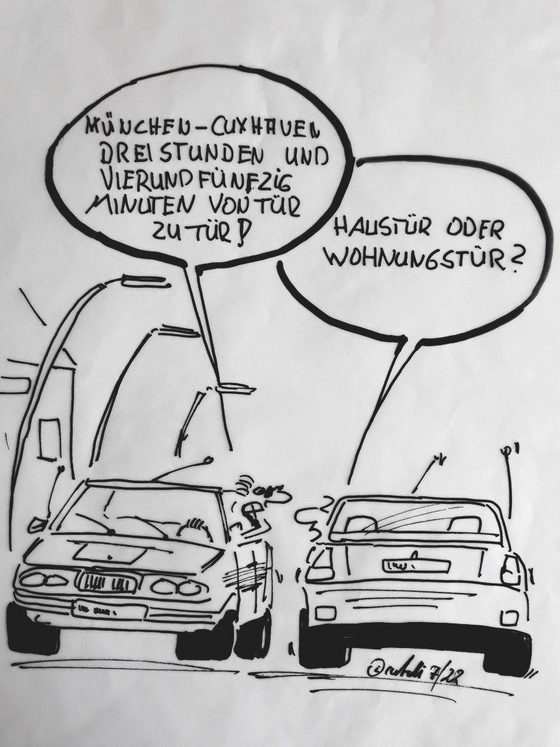 cartulli's Cartoon Es geht aufs Wochenende zu und die Touristen kommen aus ganz Deutschland zum Urlaub an den Cuxhavener Strand. Datum: 10. August 2022Autor: ullrichhoe 0 Kommentare Es geht aufs Wochenende zu und die Touristen kommen aus ganz Deutschland zum Urlaub an den Cuxhavener Strand. (Zeichnung: cartulli 7/2022 – CCC Cuxhaven-Cartoon.Center – Die Storyfactory) Teilen mit: Klicke, um auf X zu teilen (Wird in neuem Fenster geöffnet) X Klick, um auf Facebook zu teilen (Wird in neuem Fenster geöffnet) Facebook Mehr Klick, um auf LinkedIn zu teilen (Wird in neuem Fenster geöffnet) LinkedIn Gefällt mir Wird geladen …
