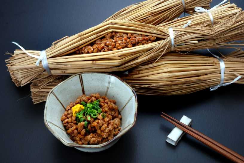 Zugegeben, optisch ist Natto keine Wucht, die bräunlichen, etwas schleimigen vergorenen Sojabohnen gelten daher auch als echte kulinarische Herausforderung für Nicht-Japaner. Doch vom Äußeren sollte man sich nicht abschrecken lassen: Natto ist extrem gesund, denn durch die Fermentation entsteht das Enzym Nattokinase. Natto enthält viel Vitamin K, soll gegen allerhand Krankheiten wie Darmprobleme und xy helfen und wahrscheinlich sogar der Demenz vorbeugen – und die vergorenen Bohnen überzeugen auch geschmacklich!