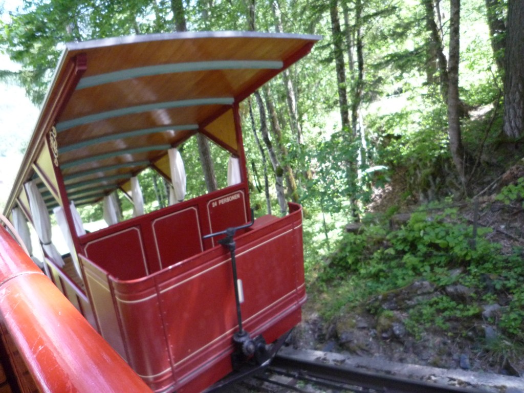 Zweitens fahrt ihr mit einer der ältesten Bahnen der Schweiz, und die ist wirklich sehenswert. Die Reichenbachfall-Standseilbahn wurde 1899 erbaut und Zugliebhaber werden ihren Spaß haben, wenn sie mit dem Nachbau eines Holzwagens fahren, der genauso aussieht wie das Original von damals.