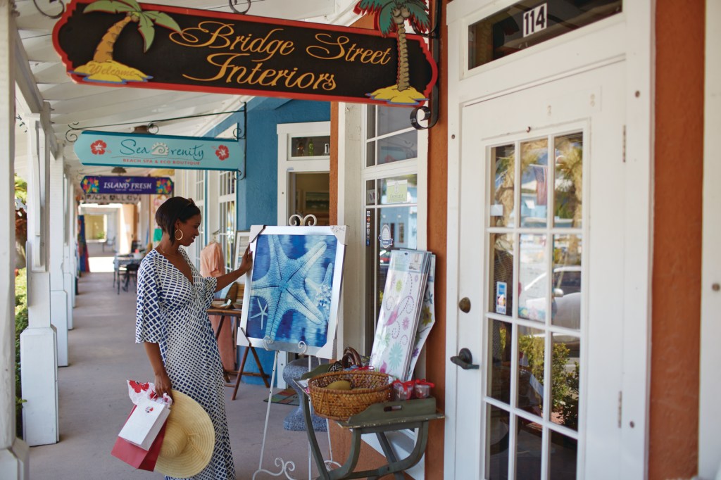 Liebevoll eingerichtete Boutiquen, Galerien lokaler Künstler, hübsche Cafés und Restaurants schmücken die kleine Straße. Bauernmärkte, Straßenfeste und Musikveranstaltungen sowie Barbecue Partys und Freiluftfilme machen sie zu einem beliebten Treffpunkt von Einheimischen und Gästen. Vom malerischen Pier an der Spitze der Bridge Street kann man die vorbeifahrenden Boote, Angler und eifrigen Pelikane beobachten, die versuchen, etwas vom Fang des Tages abzubekommen.