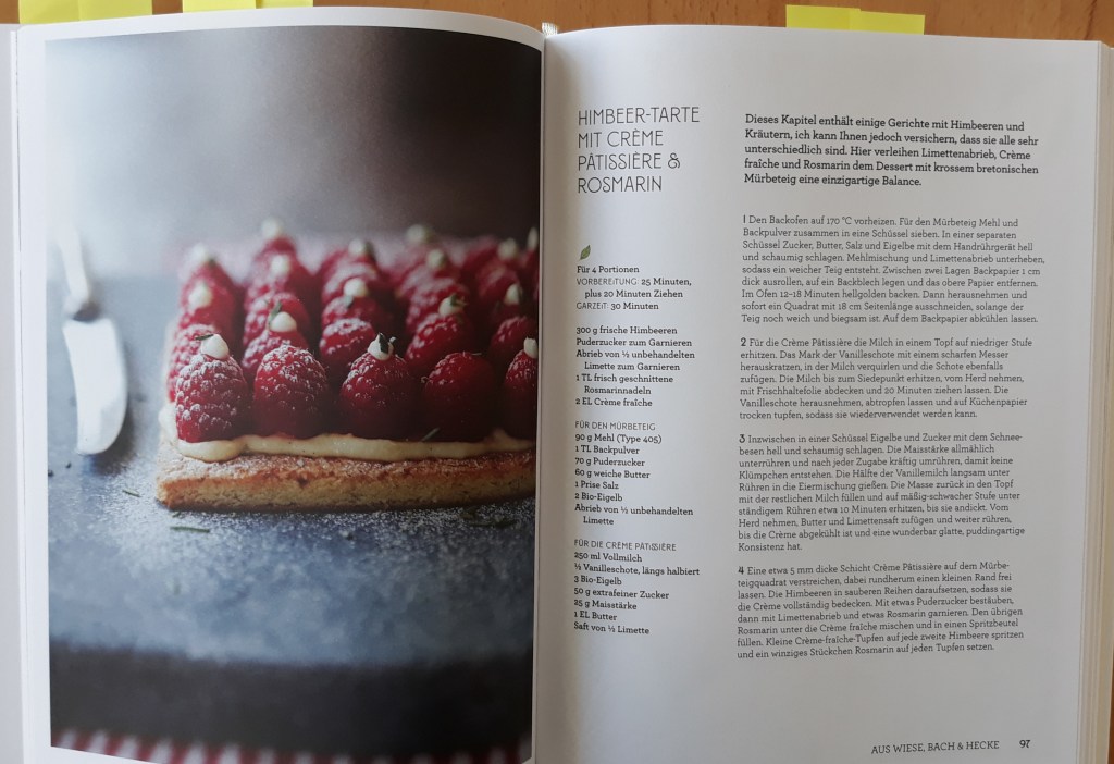 Ich habe einige der Sommergerichte ausprobiert und kann nur sagen, SUPER!!! Süßkekse und Cookie-Junkies verlieben sich bestimmt in die warmen Schokoladencookies mit Kokoseiscreme – ich schon!!. Richtig lecker wird es dann bei Tagliatelle und Carpaccio von Roter Bete – das Brot als Beilage hat meine Frau selber gebacken. Und als Abschluss – mein absolutes Highlight – Himbeer-Tarte mit Creme Patissiere und Rosmarin, ein Traum, und es gibt noch viel mehr davon im Buch.