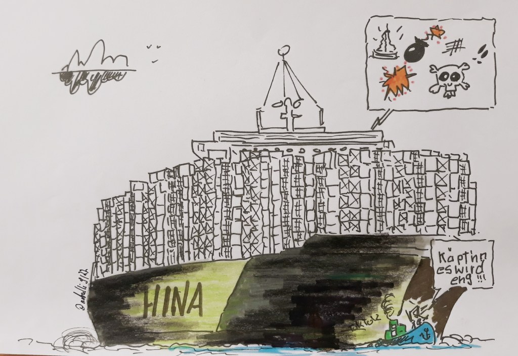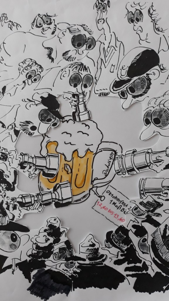 Schnell unterwegs: Läufer-Superstar Eliud Kipchoge gewinnt den Berlin-Marathon und pulverisiert seine eigene Bestzeit. Am Ende läuft der Kenianer mit 2:01:09 Stunden die offizielle Marathondistanz (42,195 Kilometer) und schlägt seinen Weltrekord von vor vier Jahren!Flüssig Brot oder Gold? Die Preise auf dem Oktoberfest waren schon immer viel zu hoch. Im Vergleich zu 2019 sind sie aber nochmal um gut 15% gestiegen. Einfach auf die Maß verzichten? Das ist gar nicht so einfach. Denn auch bei Softdrinks, Essen und Fahrgeschäften sind die Preise teils deutlich höher als auf den letzten Wiesn 2019. Auf Besucher*innen kommen nach Veranstalterangaben Kosten zwischen 12,60 Euro und 13,80 Euro (Durchschnitt: 13,37 Euro) zu. Das ist eine Preissteigerung von durchschnittlich 15,77 Prozent im Vergleich zum letzten Oktoberfest im Jahr 2019. Damals lag der Preis für die Maß zwischen 10,80 und 11,80 Euro (Durchschnitt: 11,55 Euro).Größtes Containerschiff der Welt in Hamburg: Der neue Rekordhalter ist 400 Meter lang und 61 Meter breit und hat bis zu 17 Meter Tiefgang. Das Schiff kann 24.004 Standardcontainer transportieren, 12 mehr als sein Vorgänger „Ever Ace“. Die „Ever Alot“ wird künftig im Liniendienst zwischen Nordeuropa und Asien eingesetzt. Auf dem Weg Richtung Osten werden außer Hamburg unter anderem Rotterdam, Colombo, Shanghai und Taipeh angelaufen. (Alle Zeichnungen: cartulli 09/2022 – CCC Cuxhaven-Cartoon-Center – Die Storyfactory)