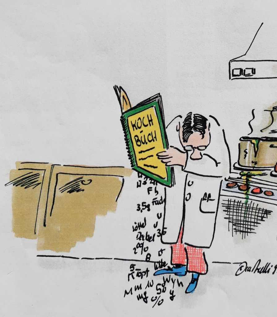Da taucht unweigerlich die Frage auf: „Kann man das nachkochen?“ Ich meine – hmmm ja, man kann. Ich würde es aber folgendermaßen etwas einschränken. Sicherlich sollte man sich nicht gleich ein ganzes Menü vornehmen (das könnte schief gehen!). Aber einzelne Teilrezepte sind bestimmt machbar. Kochen ist doch auch ein Abenteuer, und man kann sich Schritt für Schritt steigern.