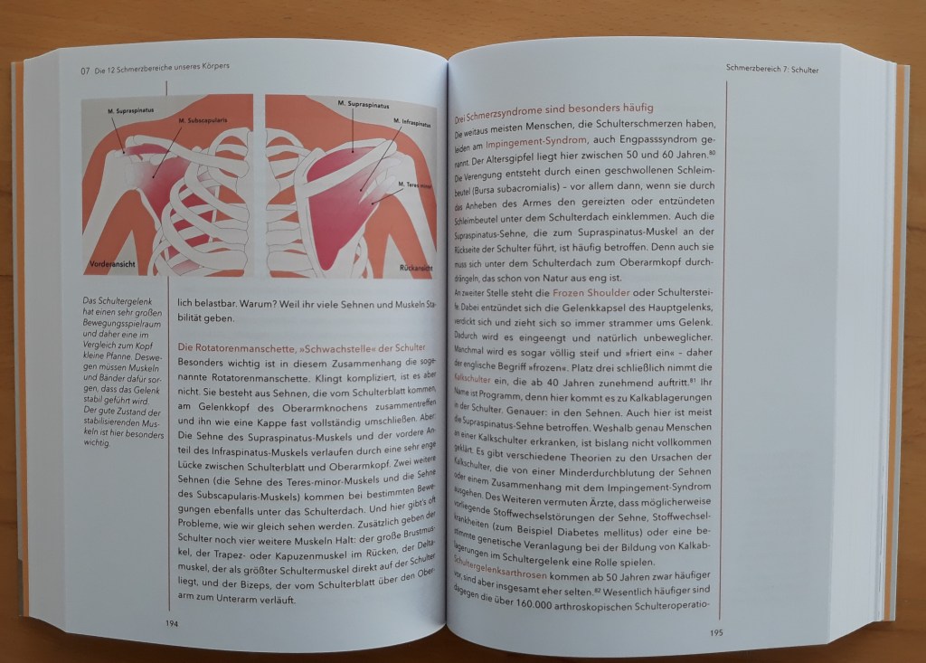 Warum ich das Buch empfehle: WOW – Knapp 300 Seiten, die sich aber ganz sicher lohnen. Die Aufmachung gefällt mir sehr gut, alles ist übersichtlich angeordnet und leicht lesbar dargestellt. Wer Schmerzen am Bewegungsapparat hat, wird in Liebschers Ratgeber, mit der passenden Übung, fündig. Allerdings muss man die Übungen natürlich auch machen, sonst hilft alles – auch dies – nicht.