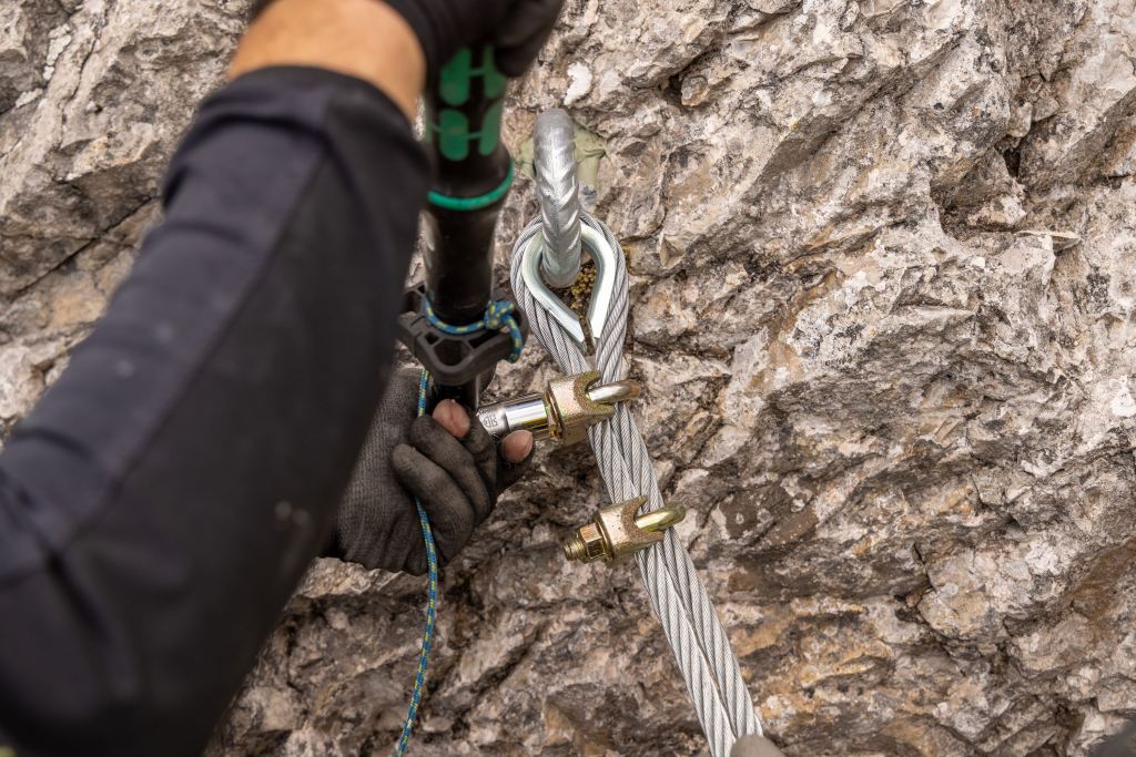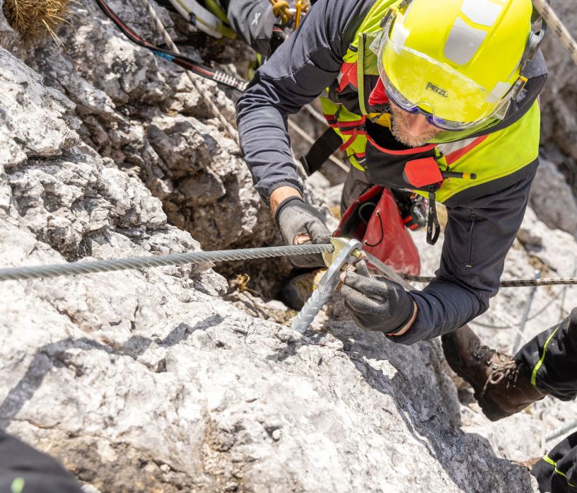 Bei der Verankerung der Drahtseile des neuen Klettersteigs Piz da Peres in der Felswand hat Sicherheit oberste Priorität. Die bauausführenden Spezialisten der KronSafety vertrauten daher auf den fischer Injektionsmörtel FIS EM Plus. Zugversuche bestätigten die Eignung der Schwerlastbefestigung für diese Anwendung.