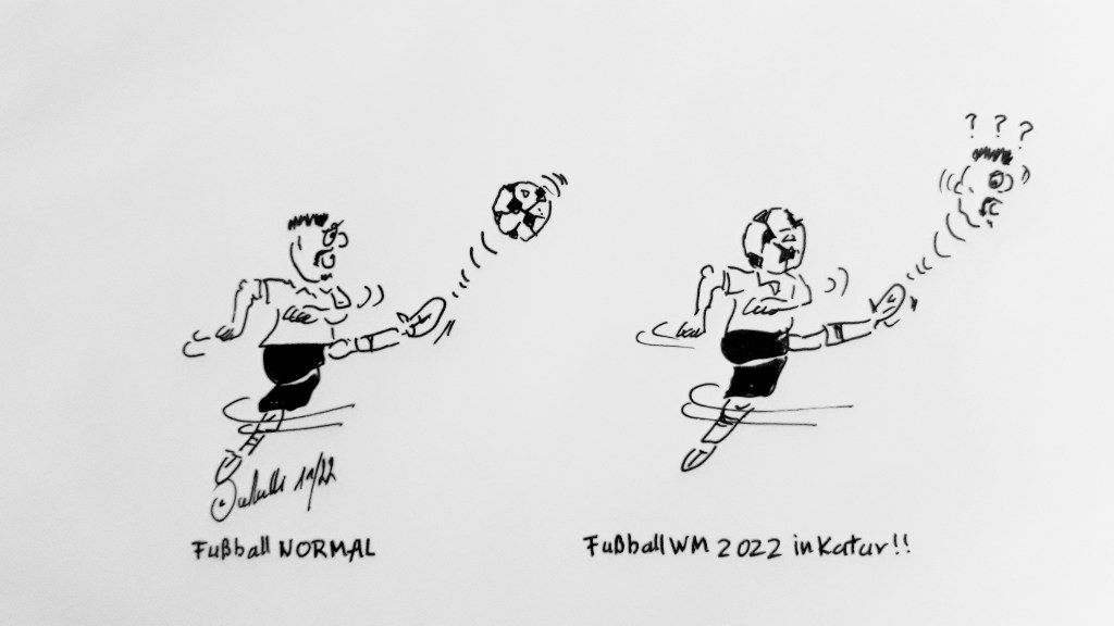 cartulli’s Cartoon zur Fußball WM 2022, Katar. (Zeichnung: cartulli 11/22 – CCC Cuxhaven-Cartoon-Center – Die Storyfactory)