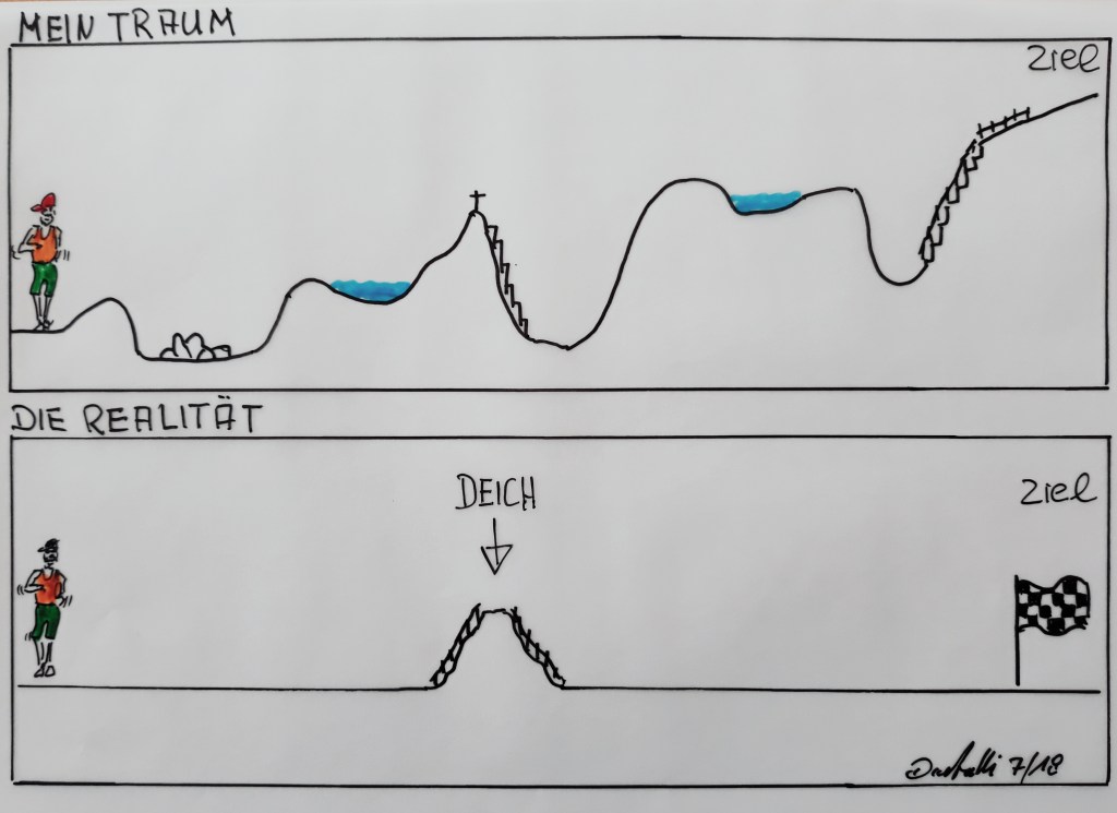 Fünf Runden – gleich 6710 Meter – bin ich gelaufen und habe sie auch geschafft. Mit fünfmal die 18%tige Steigung. Anschließend war ich fix und fertig. Aber Spaß hat es gemacht