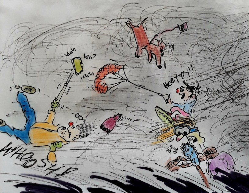 Im Sturm bei Windgeschwindigkeiten von 50 km/h: Unterwegs im Sturm, das gibt tolle Selfies!!