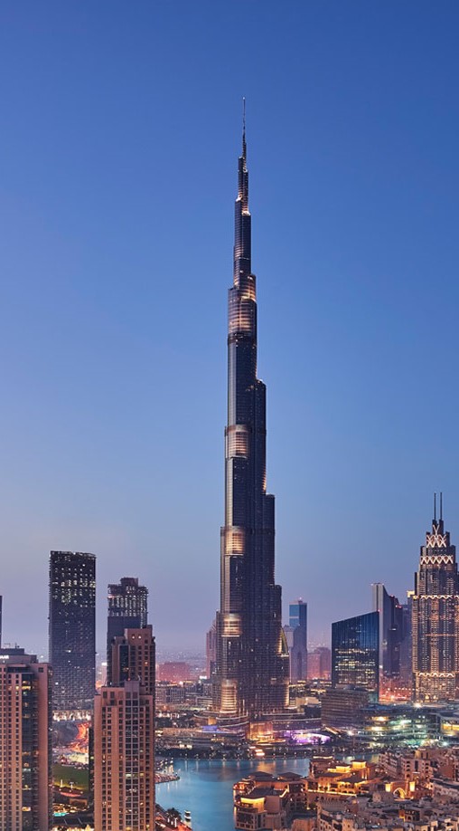 Platz 6: Burj Khalifa, Dubai Der Burj Khalifa ist mit 828 Metern Höhe das höchste Gebäude der Welt. Die Aussichtsplattformen und -terrassen lassen sich mit Aufzügen des Herstellers Otis erschließen. Sie legen 10 m/s zurück – also 36 km/h. Die Fahrstühle führen bis in die 189. Etage auf 638 Metern