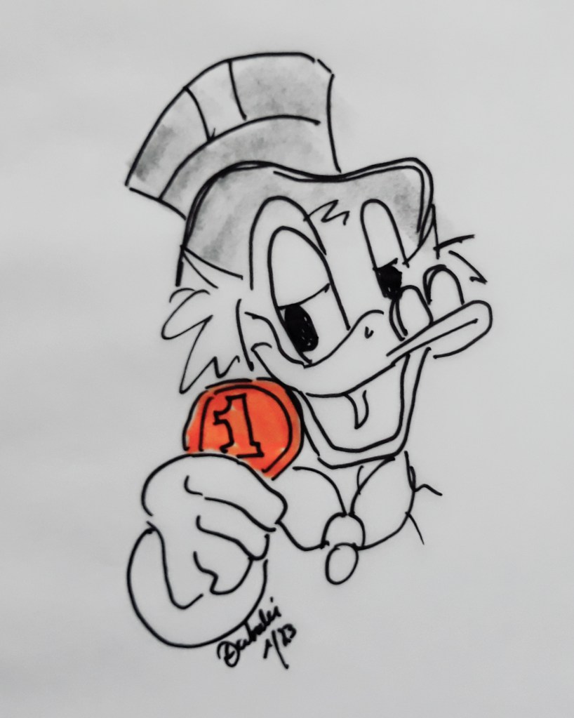 Die reichste Ente der Welt hatte Geburtstag, Dagobert Duck wurde 75 jahre alt! Aber wieviel Geld besitzt Dagobert Duck? Dazu gibt es in den Comics immer wieder neue Antworten. Demnach beträgt das Vermögen Dagoberts 5 Fantastilliarden und 9 Trillionen Taler sowie 16 Kreuzer. In anderen Abenteuern sind es mal 13 Trillionen, 224 Billionen, 567 Milliarden, 778 Millionen Taler und 16 Kreuzer oder auch 5 Pimpillionen, 396 Tripstrillionen, 83 Fantastilliarden und 16 Kreuzer. Aber kein Mensch weiß, wie viel eine Fantastilliarde in Euro ist. Jedenfalls reichen Dagobert die Münzen und Scheine für ein Vollbad im Geldspeicher