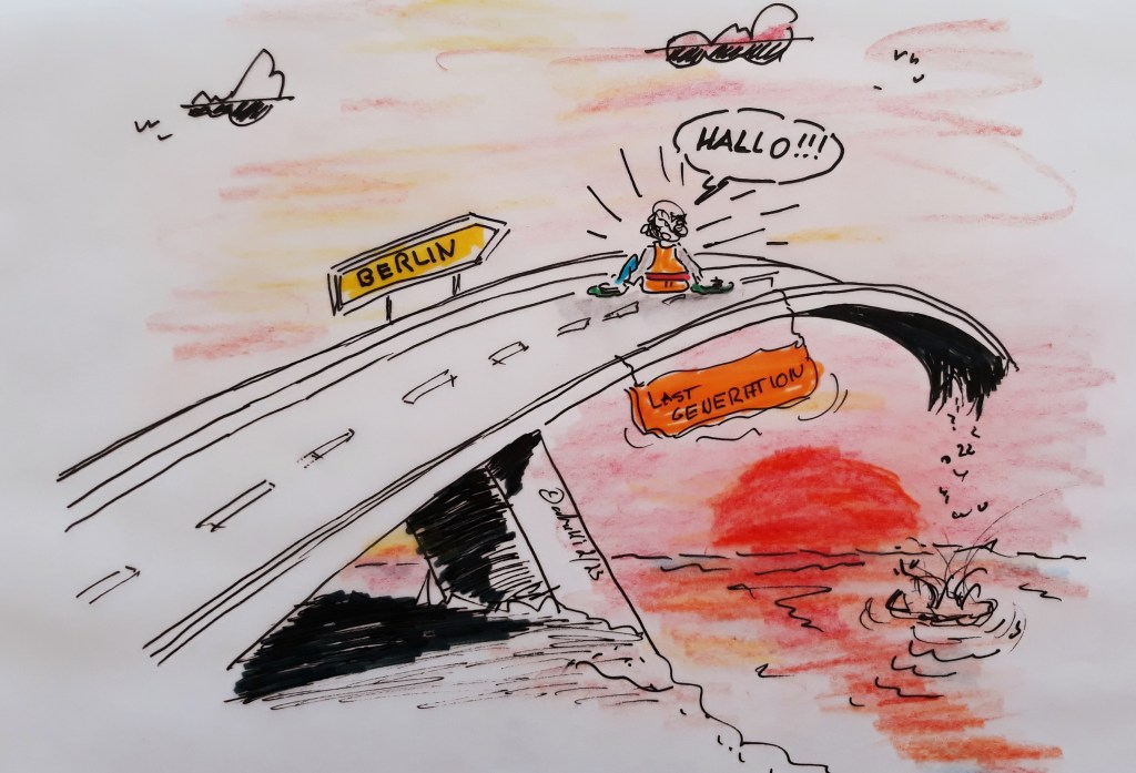 »Klima-Kleber« bleiben dran: Die Klimaaktivisten der „Letzten Generation“ haben angekündigt, ihre Protestaktionen 2023 auf das gesamte Bundesgebiet auszuweiten. Wie das konkret aussehen kann, hier das aktuelle Beispiel: Aktivisten der „Letzten Generation“ haben am Mittwoch-Vormittag in Berlin-Mitte die Mühlendammbrücke blockiert. Neben dem bekannten Festkleben auf der Straße kippen die Umweltschützer auch Beton auf die Straße. Von der Gruppe „Letzte Generation“ hieß es, im Fokus der Aktion stehe die „fehlgeleitete Verkehrspolitik der deutschen Bundesregierung“. Mit dem Ausschütten des Betons werde dieser „einem sinnvolleren Zweck“ zugeführt als dem Neubau klimaschädlicher Autobahnen.