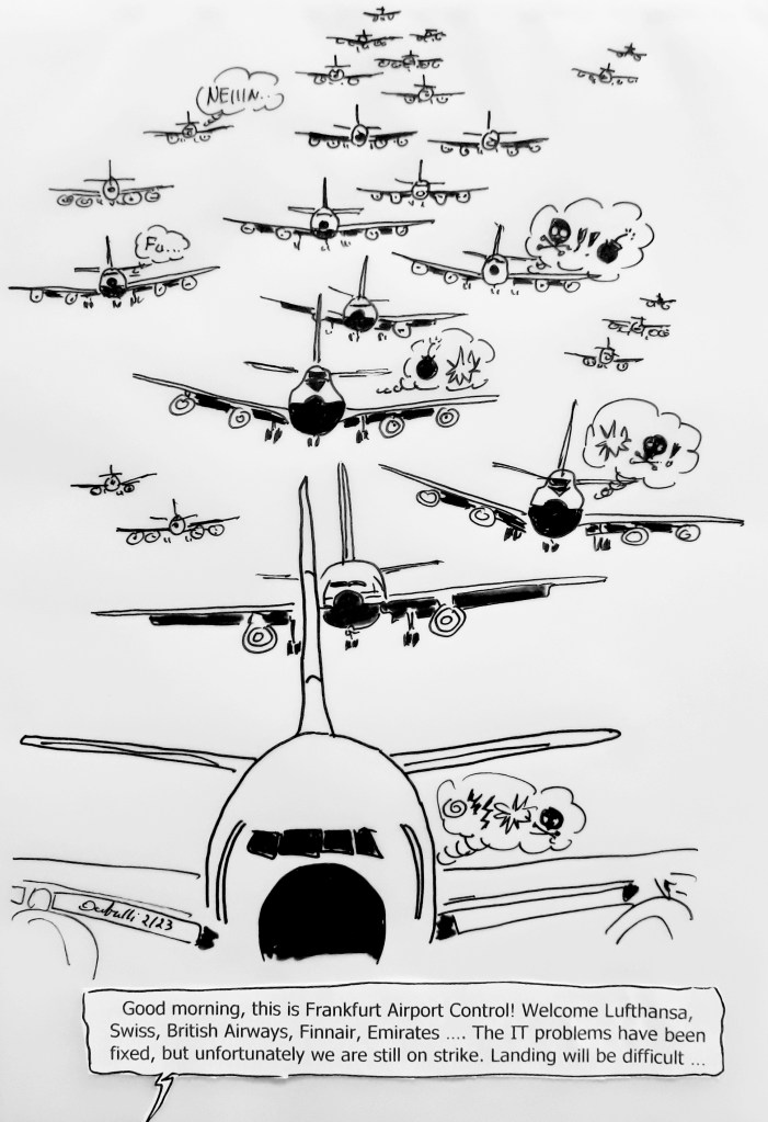 IT-Probleme und Streik legten Frankfurter Flughafen lahm: Zwei Ausfälle in kurzer Folge – Nach dem IT-Schaden bei der Lufthansa lähmte schon am Freitag ein Verdi-Streik die Flughäfen. Nicht nur in Frankfurt und München wird der reguläre Passagierbetrieb eingestellt. Nach einer IT-Störung bei der Lufthansa am Mittwoch kam am Freitag ein weiteres Ungemach – STREIK. Es viele abermals viele Flüge aus, da die Gewerkschaft Verdi zum Ausstand aufgerufen hat – nicht nur in Frankfurt, sondern auch an den Flughäfen in München, Stuttgart, Hamburg, Dortmund, Hannover und Bremen.