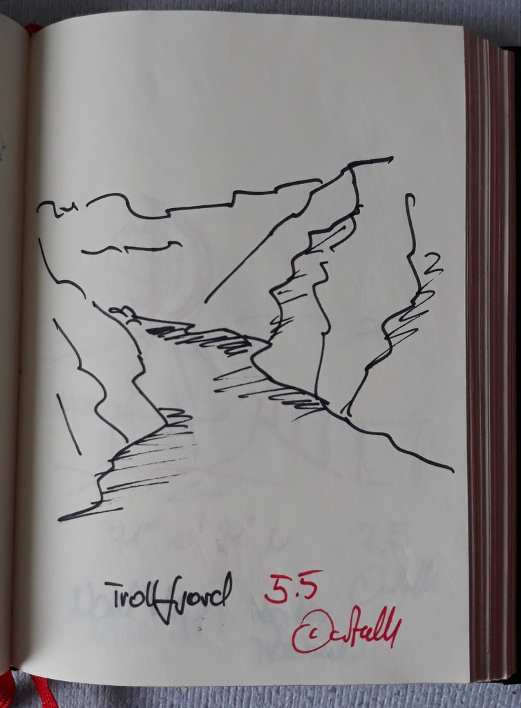 …der Trollfjord ist ein 2 Kilometer langer Seitenarm des Raftsunds, der die norwegischen Inselgruppen der Lofoten und der Vesterålen voneinander trennt. Die Einmündung des Trollfjords in den Raftsund ist nur 100 Meter breit. Im weiteren Verlauf erweitert sich der Fjord bis auf eine maximale Breite von 800 Metern. Die Südseite des Trollfjords wird durch den 1045 bis 1084 Meter hohen Trolltindan begrenzt, an der Nordseite steigen der 998 Meter hohe Blåfjell und der 980 Meter hohe Litlkorsnestinden fast senkrecht aus dem Wasser.