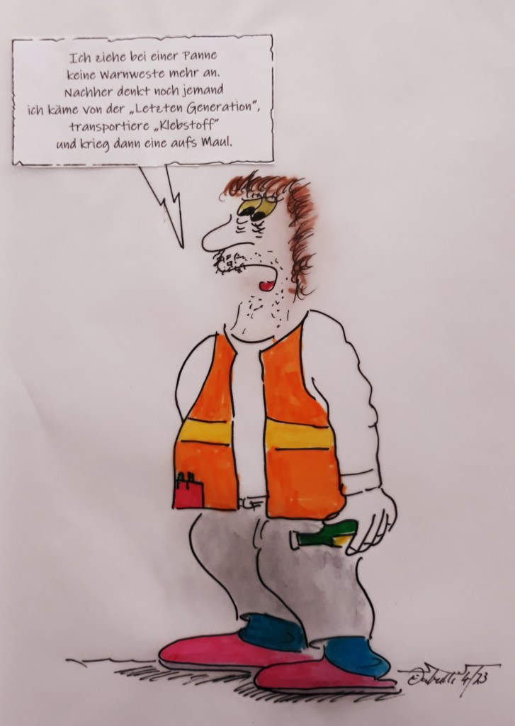 Hans-Günther Sauer hat uns mal wieder mit seiner, ganz eigenen Sicht der Dinge, beehrt. Viel Spaß damit! (Zeichnung: cartulli 4/23 – CCC Cuxhaven-Cartoon-Center – Die Storyfactory, Entwicklung der Figur Hans-Günther Sauer)