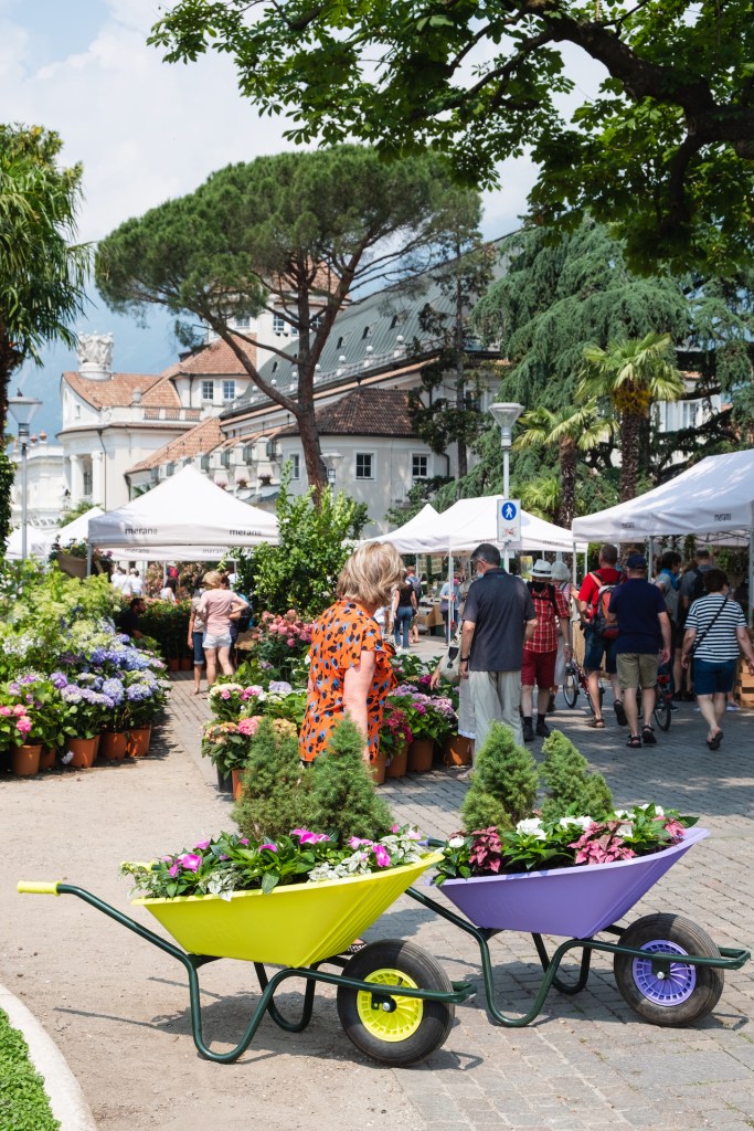 Das Merano Flower Festival: Philosophie, die blüht: Unter dem Motto Tropical! findet das Merano Flower Festival 2023 von 28. April bis 01. Mai in Zusammenarbeit mit den Gemeinden Schenna, Naturns und Algund bereits zum fünften Mal statt. Herzstück der Veranstaltung bildet der Blumen- und Zierpflanzenmarkt – ein Treffpunkt für Schöngeister und Genießer, im Einklang mit Merans Werten: Authentizität, Qualität und Erlebnisreichtum.