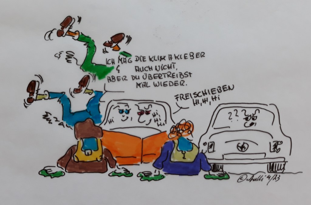 Für die Vorstellung ihrer bislang größten Protestwelle haben sich die Klima-Aktivisten der „Letzten Generation“ einen bizarren Ort ausgesucht: die Sankt-Thomas-Kirche in Kreuzberg, ein evangelisches Gotteshaus mitten in Berlin. Die vermeintlichen Weltenretter in einem Gotteshaus – WOW was für eine Scheinheiligkeit! Trotzdem, ich glaube, wir sollten die Klima-Kleber vielleicht am besten einfach umfahren und ihnen die feste Beziehung zum Asphalt auch mal gönnen. Also nicht überfahren, sondern drum herum. Gewalt ist ja keine Lösung. Außer manchmal.
