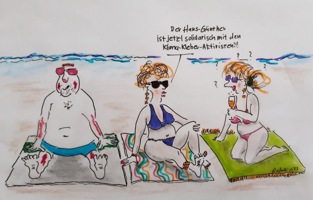 Hans-Günther Sauer hat uns mal wieder mit seiner, ganz eigenen Sicht der Dinge, beehrt. Im vergangenen Pfingsturlaub am Strand von Cuxhaven, hat er deutlich gemacht, was er von den Klima-Aktivisten und ihren Klebe-Aktionen hält.