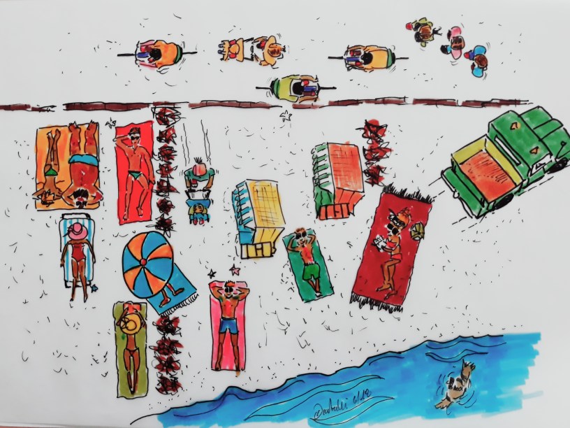 Heute und hier mal nichts über Habeck, Heizung, China, Energie-Defizit, Putin, Bundeskanzler, usw. Denn einmal pro Woche gibt es hier ein Bild zur Entspannung. Die Zeichnung von heute stammt aus dem Juni 2018 – Ein Sommertag am Meer – damals wie heute ein schöner, sonniger Tag.