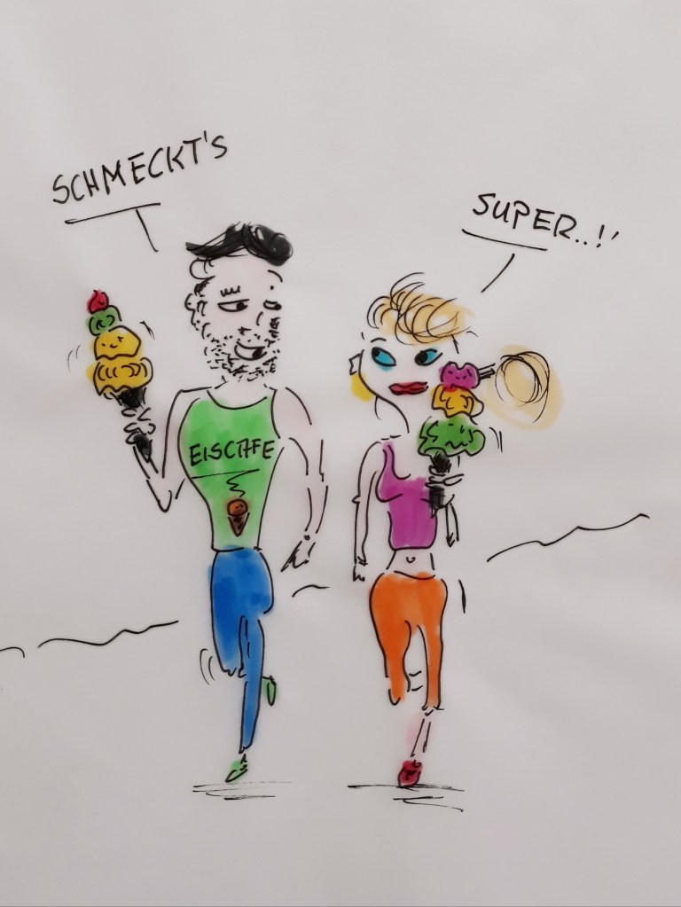 Mit einem guten Freund, zum Eiscafe laufen, und dann gemeinsam ein leckeres Eis essen.