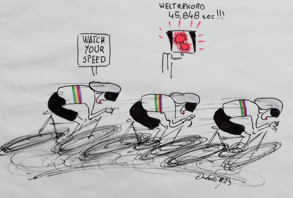 Rad-WM in Glasgow Deutsches Frauen-Trio rast zu Gold und Weltrekord: Starker Start für das deutsche Team bei der Rad-WM in Glasgow: Nach Silber für Franziska Brauße im Einzel holte das deutsche Team in der Verfolgung zum Auftakt mit einer überragenden Leistung Gold. Dabei steigerten sich Pauline Grabosch, Emma Hinze und Lea Sophie Friedrich am Donnerstag (03.08.2023) von Durchgang zu Durchgang und besiegten schließlich im Finale das ebenfalls favorisierte England in neuer Weltrekordzeit von 45,848 Sekunden.