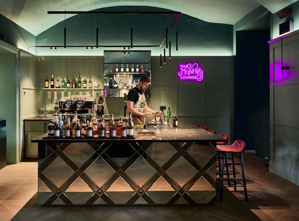 Gin-Liebhaber kommen in der Monkey Bar in Prag auf ihre Kosten. Denn hier können sie Monkey 47 Gin samt kreativster Cocktailkreationen verkosten. Die Bar besticht durch ein Crossover aus Boutique-Charme und urbanem Feeling und punktet mit Signature Cocktails mit Storytelling und einem Social-Dining Konzept mit Tapas. Sie gehört zum Falkensteiner Hotel Prague im Herzen der tschechischen Hauptstadt und ist längst zum Afterwork Hotspot der Pragerinnen und Prager geworden.