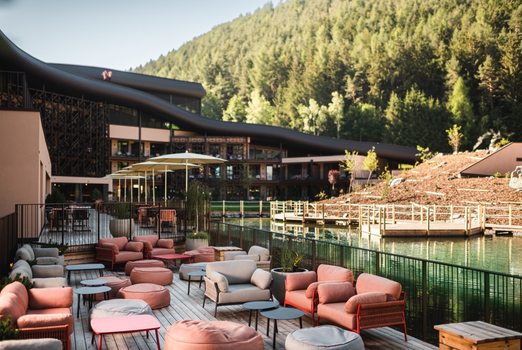 Näher am Wasser geht nicht: Diese Bar befindet sich im Falkensteiner Family Resort Lido in Südtirol, im Stammhaus der Familie Falkensteiner. Die Hotelbar mit Kaminzimmer und traumhafter Seeterrasse bietet einen atemberaubenden Ausblick über den hauseigenen See auf die umliegende Berg-Landschaft. Hier genießen Kinder und Erwachsene ausgelassene Stunden bei Live-Musik, Abendshows oder in der Kinderdisco.