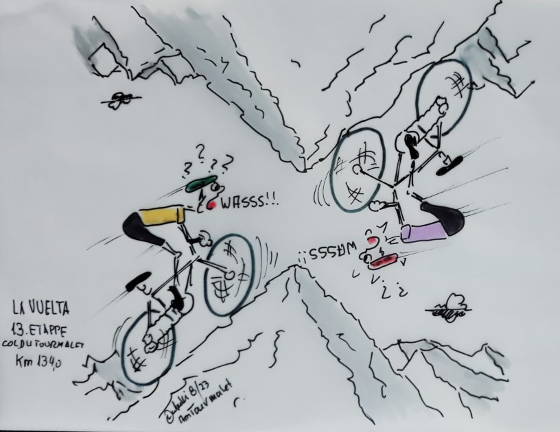 Den 8. September 2023, einen Freitag, sollten sich Radsportfans fett anstreichen im Kalender. Es geht auf der 13. Etappe nach Frankreich auf den Col du Tourmalet. Die 134,7 Kilometer zwischen Formigal. Huesca la Magia und dem Ziel in 2115 Metern Höhe sind eine einzige Achterbahnfahrt, auf der es kaum einen flachen Meter gibt. Puerto de Portalet (3. Kategorie), Col d’Aubisque (Kategorie “Especial” – vergleichbar mit der Hors Categorie bei der Tour de France), Col de Spandelles und der Aufstieg zum Tourmalet (Kategorie Especial) bereiten die Bühne, um eine Vorentscheidung bei der 78. Vuelta a Espana herbeizuführen.