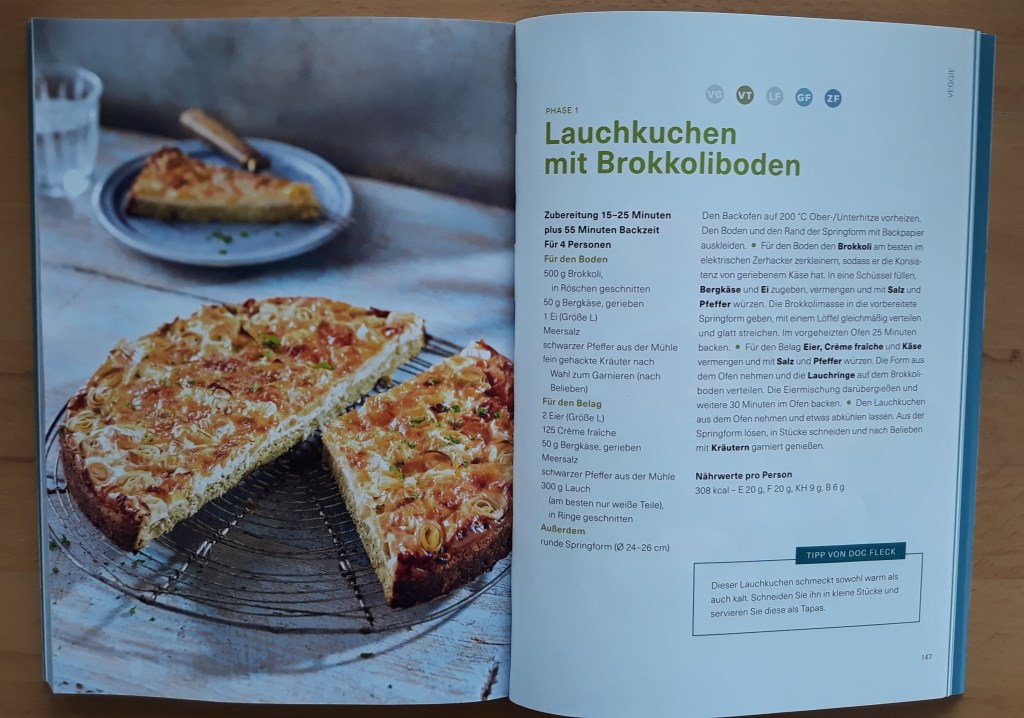 Warum ich das Buch empfehle: Eines kann man schon sagen: Doc Fleck ist mit diesem Buch ein weiteres tolles Werk gelungen. Das neue Buch von Anne Fleck wurde mit Su Vössing und der Low-Carb-Spezialistin Bettina Matthaei entwickelt. Alle Infos sind, wie immer, gut und verständlich dargestellt. Die Rezepte sind klar beschrieben. Dabei sind die Rezepte so gestaltet, dass sie ohne großen Aufwand bei der Zubereitung und beim Einkaufen der Zutaten, möglich sind. Es gibt Rezepte für Frühstück, Suppen, Salat, Fisch, Fleisch, Veggie, Snacks und Drinks,