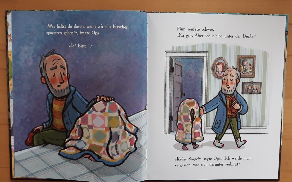 Die Geschichte von Finn und dem Großvater beginnt alltagsnah mit einem Kind, das sich unter einer Decke vergräbt und nicht über seine Gefühle sprechen möchte. Dennoch lässt es sich vom Opa zu einem Spaziergang überreden, der allerlei verborgene Welten offenbart: Das eindrucksvolle Wurzelwerk der Bäume, das bunte Treiben unter dem Meeresspiegel und raffinierte Verstecke verschiedener Tierarten.