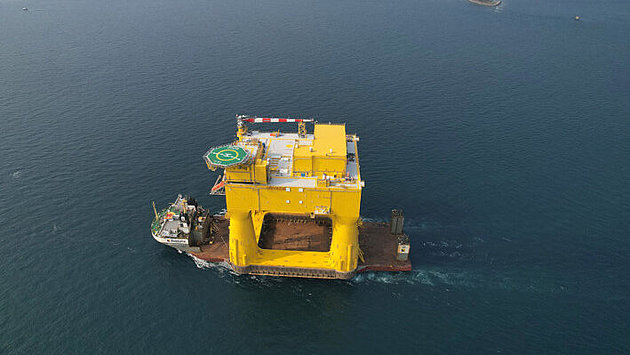 Die Konverterplattform „DolWin epsilon“ wird von Singapur nach Haugesund, Norwegen, transportiert (Foto: Aibel)