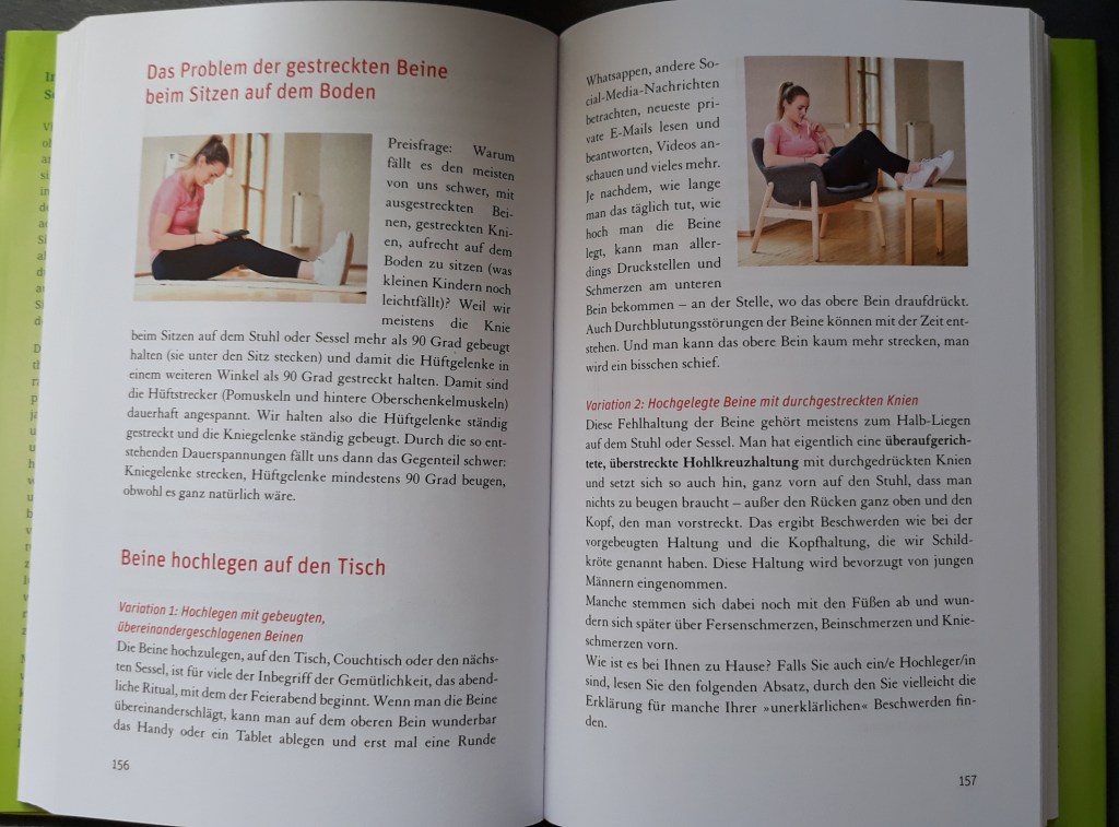 Durch dieses Buch bin ich auf meine Sitzgewohnheiten aufmerksam geworden. Mir war gar nicht klar, wie ich mich (auch heute noch) den ganzen Tag auf dem Stuhl verrenke. Kurz gesagt, allen die viel sitzen müssen kann ich dieses Buch besonders empfehlen.