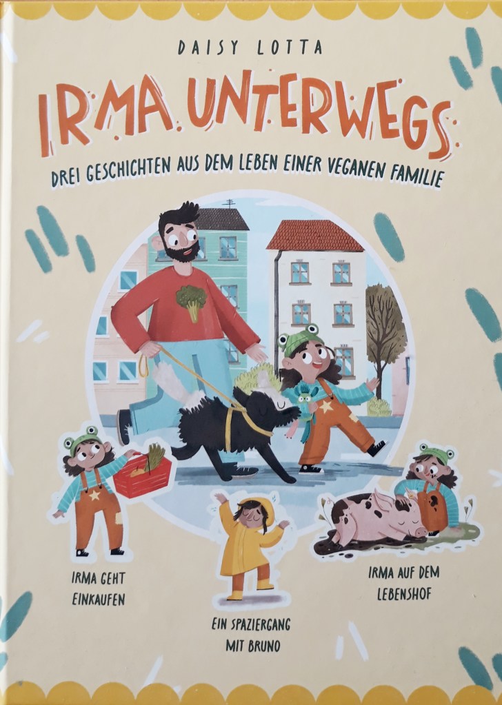In Daisy Lottas neuem Kinderbuch begleiten wir Irma in drei Geschichten durch ihren Alltag, wobei sich alles rund um das Thema Vegan dreht. Immer dabei Irma’s Papa, der Hund Bruno und Irma’s Lieblings-Stofftier Gurki. Wirklich klasse dabei, alle drei helfen Irma, sich mit ihrer Umwelt zu verständigen, den richtigen Umgang mit Tieren zu lernen und die bewusste Wahl pflanzlicher Lebensmittel nachzuvollziehen. Beim Spaziergang mit Familienhund Bruno entdeckt Irma viele spannende Dinge in der Natur.