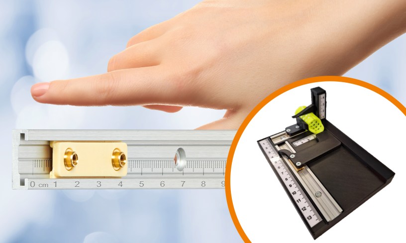 Die Studierenden haben dabei drei 17 Millimeter schmale Aluminiumschienen auf die Plattform geschraubt – für die Längen-, Breiten- und Höhenmessung der aufgelegten Finger. Die Schieber, montiert auf kompakten Schlitten, 30 Millimeter lang und nur 6 Millimeter hoch, bewegen sich während des Messens über Gleitflächen aus Hochleistungskunststoff auf den Schienen.