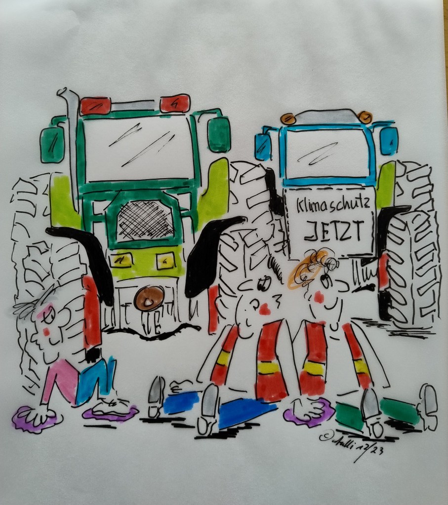 Letzte Generation blockiert Verkehr ab sofort mit Traktoren, weil das offenbar für alle in Ordnung ist. Dass die Traktoren bei ihren Einsätzen Diesel verbrennen und CO2 sowie Feinstaub freisetzen, finden die Aktivisten zwar nicht ideal. Doch manchmal müsse man auch auf unkonventionelle Methoden zurückgreifen, um die Umwelt zu retten. FAKE oder Warheit? Für unserern Karikaturisten cartulli der Grund für eine Karikatur.