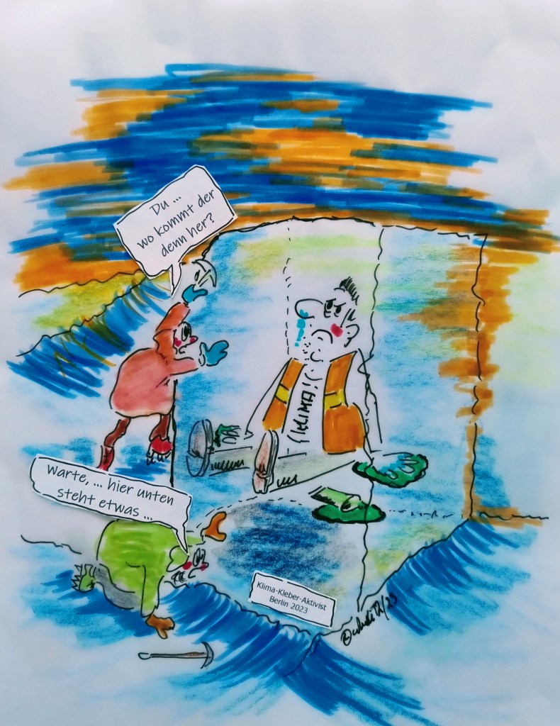 Klimaerwärmung hin oder her. Wer ist schon so blöd, und klebt sich im Winter, bei Minusgraden, auf die Straße? – Na …. Wer wohl?