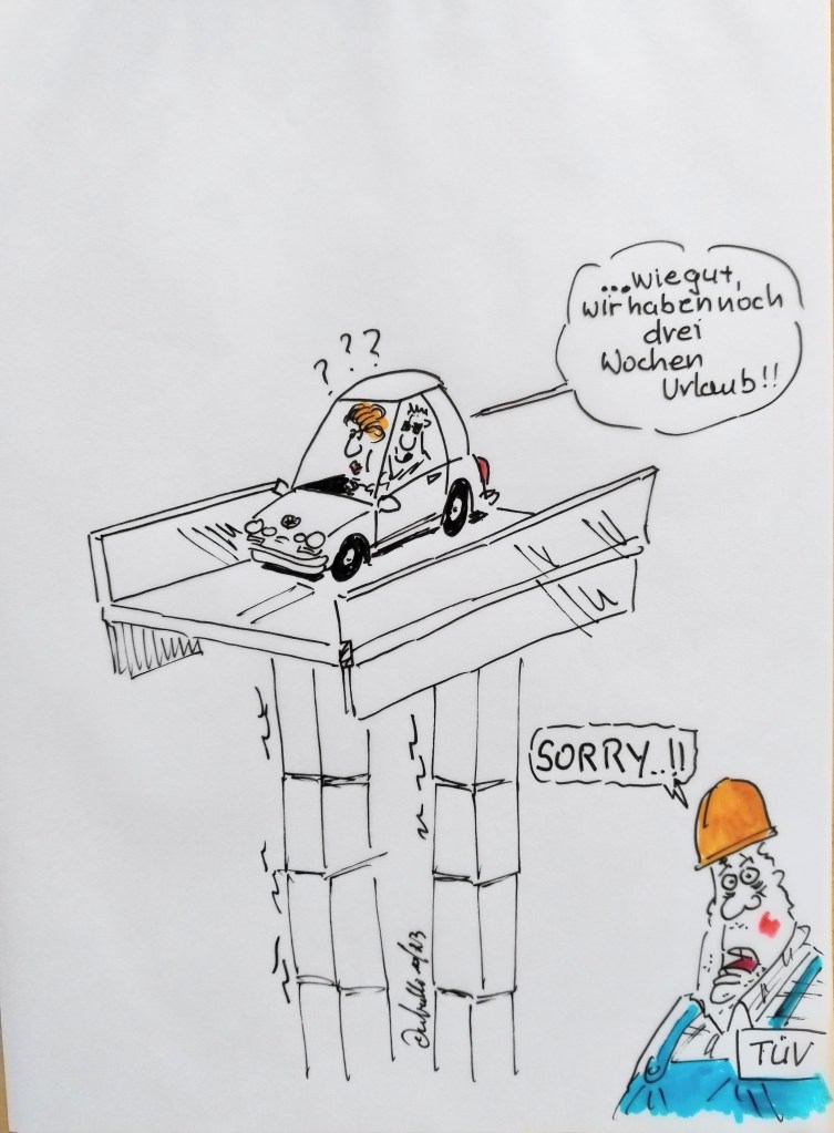 Deutschland hat ein Brückenproblem, einige sind in einem schlechten Zustand, und bei einigen Brücken fragt man sich beim Vorbeifahren, welchen Sinn sie erfüllen. Es sind sogenannte So-da-Brücken. Diese sind in der Regel einfach nur so da und beginnen und enden in der Regel im Nichts. Daher werden diese oft auch als tote Brücke bezeichnet.